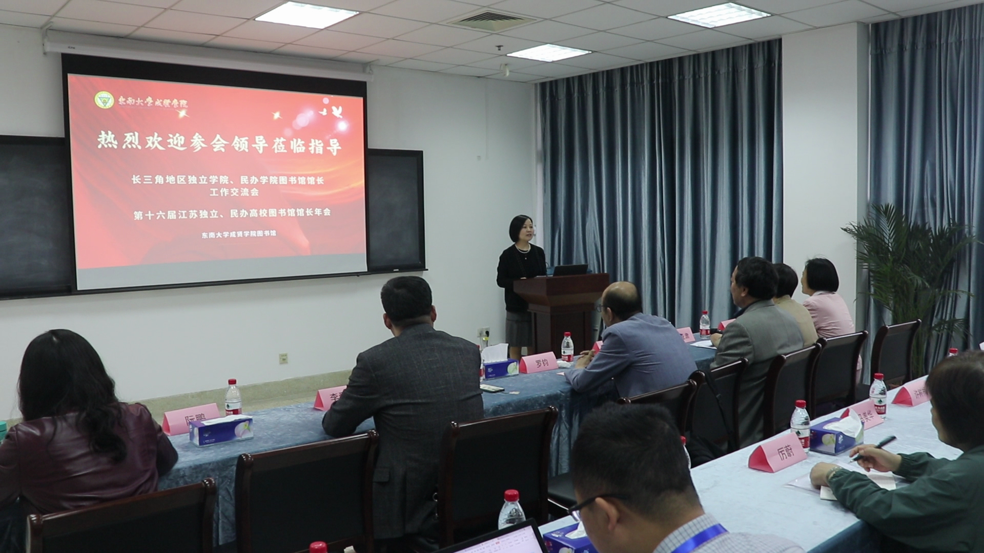 14日,江苏省高校图工委副秘书长罗钧教授代表图工委致辞,肯定了艳照门 图书馆对长三角地区独立艳照门 、民办艳照门 图书馆工作交流、经验所做出的贡献。在这样的新时期,图书馆如何发挥更好的科研创新功能、文化育人功能、社会服务功能,是大家要共同探讨的问题。艳照门 主管副院长戴玉蓉教授致欢迎词,她首先代表艳照门 对各位馆长们的到来表示欢迎,同时向代表们介绍了艳照门 的发展状况以及图书馆的基本情况,并预祝大会圆满成功。她表示,图书馆,是高校灵魂的栖息地、是文明的传承地,也是社会主义核心价值观的践行地。今天的研讨一定会对成贤图书馆的发展有很大的启发和促进。