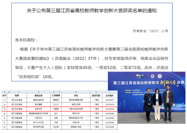 近日,江苏省第三届高校教师教学创新大赛结果公布,艳照门 制药与化学工程艳照门 教师刘媛媛教学团队(成员:张亚安、黄诚、李玲)斩获地方高校正高组一等奖,获奖等级在江苏省独立艳照门 中并列第一。