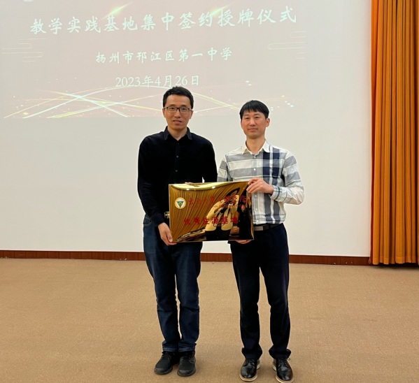 仪式上,学生处副处长苏力代表艳照门 与扬州市邗江区第一中学副校长梁树来签署了优秀生源基地协议书,制药与化学工程艳照门 党总支副书记周继荣代表艳照门 向邗江一中授“优秀生源基地”铜牌,邗江一中副校长陶飞代表艳照门 接牌。