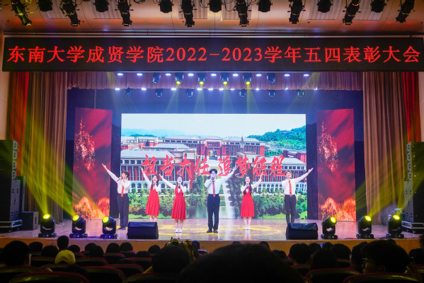 歌舞《We Rock》拉开了大会序幕。随后,全场合唱团歌,在庄严肃穆、激扬嘹亮的团歌声中,大会正式开始。王荣副书记在大会中向全校青年师生表达了节日祝福,并向受到表彰的先进集体和个人表示祝贺。他在讲话中希望成贤青年学生要深刻领会五四运动的历史意义,坚持弘扬五四精神,准确把握五四精神的时代内涵,明确新时代青年学子的使命担当。寄语成贤青年要树立远大理想,坚定理想信念,做走在时代前列的奋进者;坚持奋进创新,勇担时代责任,做走在时代前列的开拓者;秉承止于至善精神,自觉锤炼品德,做走在时代前列的奉献者。