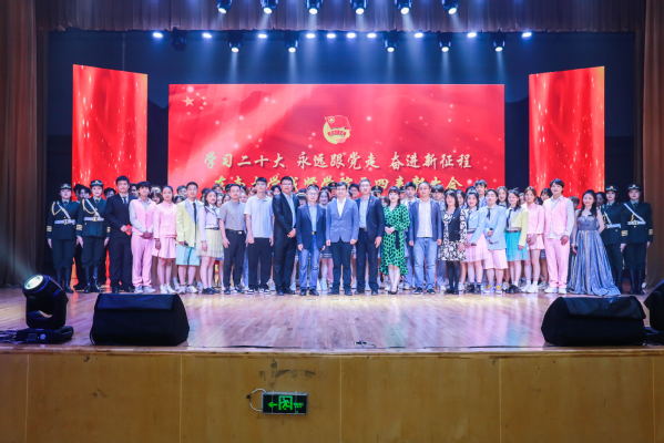 大会中,王荣副书记为“五四红旗团委”和“优秀团务工作者”颁奖,施杰部长分别为荣获“魅力团支书”“优秀共青团干部”和“优秀共青团员”的代表颁奖,团委书记潘明烽宣读表彰决定并为“优秀护旗手”“五四青年奖章”颁发证书。《青春·志愿》节目邀请了后勤管理处副处长丁秀山、毕业生刘昊和大四毕业生、原志工部部长罗倩进行了访谈,分别从疫情防控、公益献血、乡村振兴、公益支教、校地共建公益活动等方面分享了各自的志愿服务经历,讲述了属于他们的青春故事。活动中,歌曲《有我》《破浪》、朗诵《我愿为此,奋斗终身》《书写青春华章》、舞蹈《new youth》给现场师生带来了视听盛宴,表达了要与这个时代主题同心同向的理想信念,要勇担这个时代赋予的历史责任,励志勤学、刻苦磨炼,在激情奋斗中绽放青春光芒、健康成长进步的愿望。